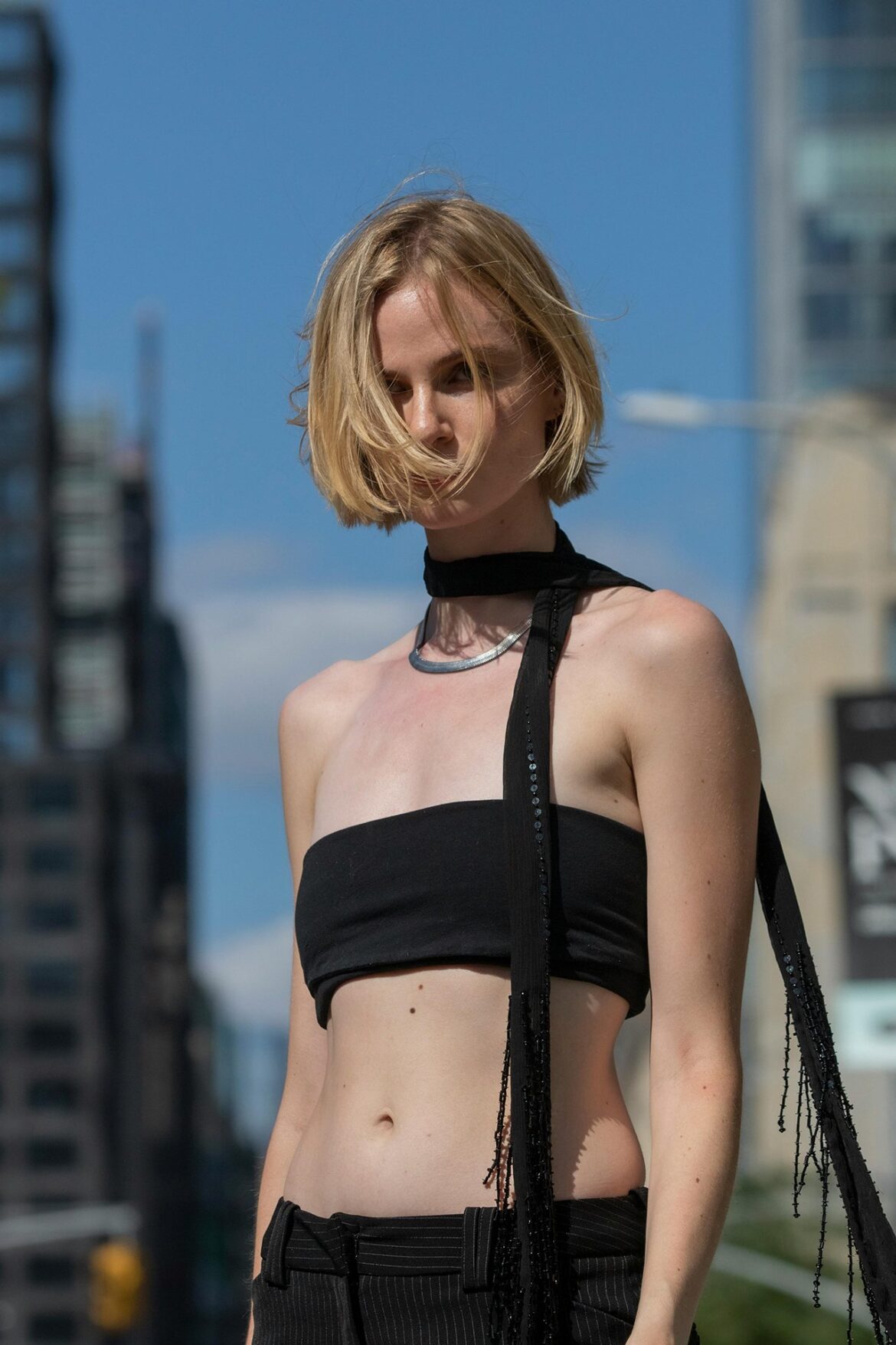 Matching sets are always a winning choice, and if you want an easy way to rock suede, coordinating pieces are the way to go. Sasha looks absolutely stunning in a suede jacket paired with a matching mini skirt, crafting the ideal fall outfit. To keep things seasonally appropriate, she completes her look with sheer tights and stylish chocolate heels, creating an ensemble that’s sure to turn heads.